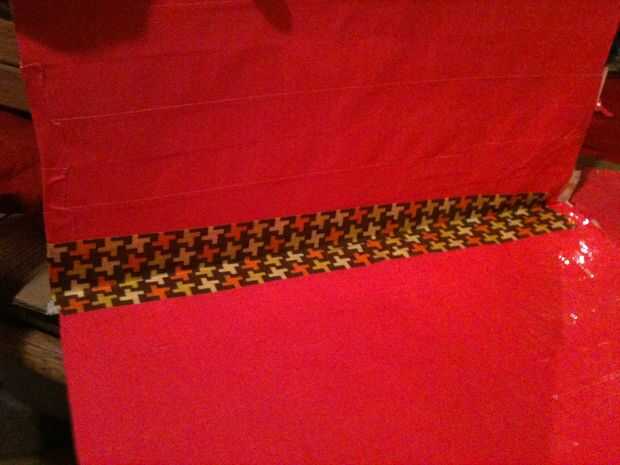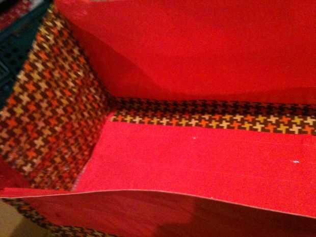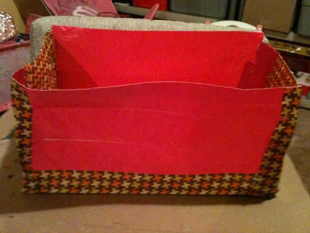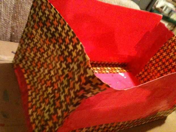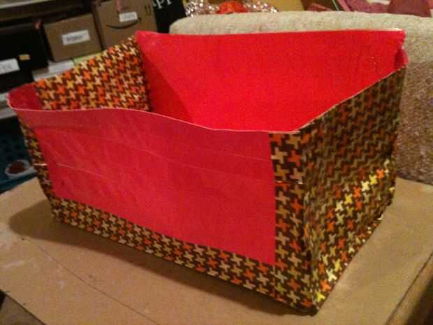 En primer lugar, la cinta la hoja 13 de 7 pulgadas inferior a las dos hojas del lado 13 por 7 pulgadas. Cinta adhesiva en las grietas, frente y dorso. Luego, pegue las dos plazas de 7 por 7 pulgadas a cada lado. Su caja está ahora montado y listo para ser modificado para requisitos particulares! Siga el resto de los pasos para añadir bolsillos, asas y los compartimentos a su caja de almacenaje para hacer su propio!