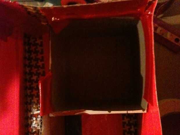 Esto es bastante simple. Tome una caja de Kleenex, cortar la parte superior (con la apertura de plástico) y cinta aislante por dentro. Cinta adhesiva a lo largo de las grietas y los lados y en todas partes que toca la caja de la cinta de conducto.