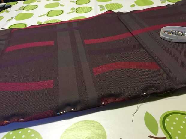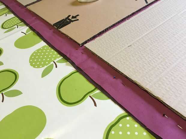 Coser lados el interior y el exterior tela para hacer cuatro bolsillos para poner la cartulina en dos en cada bolsillo. Asegúrese de que los cuadrados caben en racimo. Luego coser los extremos juntos. Que las plazas probar si encajan. Ya pueden ver el cuadro toma forma.