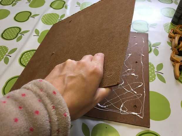 Corte dos cuadrados de cartón prensado tan grande como la caja es amplia. Les pegan.