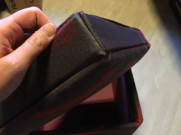 No cierre todavía. Primero se debe coser los bordes largos de las piezas laterales, puede hacerlo con la máquina de coser. Poner 1 capa de cartón prensado en ellos, pero creo que se puede utilizar cartulina regular así. El cuarto lado de la Plaza y las esquinas de las piezas laterales tienen que ser cosidos a mano.