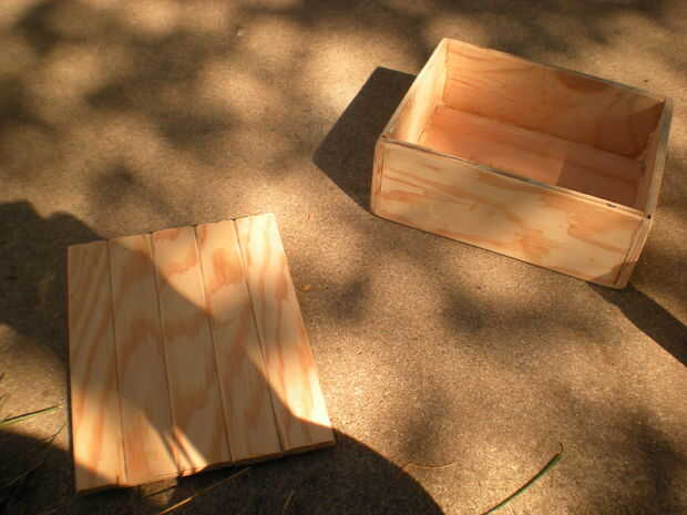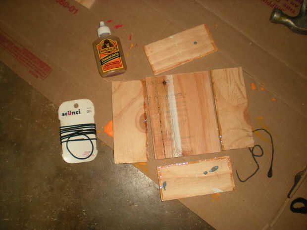 Unir las piezas de la dos tapa. Pegamento extensión y sandwich junto. Alinee la tapa con la caja para verificar que esté colocado correctamente. De la abrazadera.