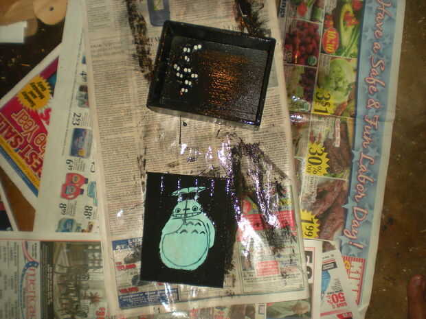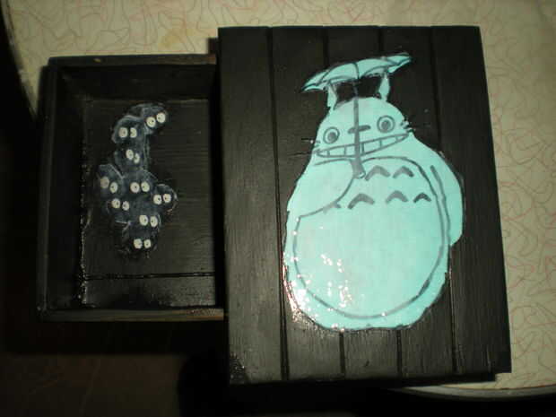 También pueden pintar y su caja de la goma laca. Dolido de mi bento, adjunto fotos con Modge Podge y rociado con laca.