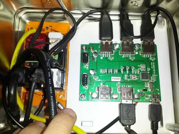 Cables conectados al concentrador USB alimentado
