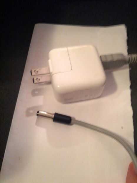 - Elegí un cargador iPad porque era el más pequeño cargador 2.1 que tenía. El enchufe se dobla para arriba.