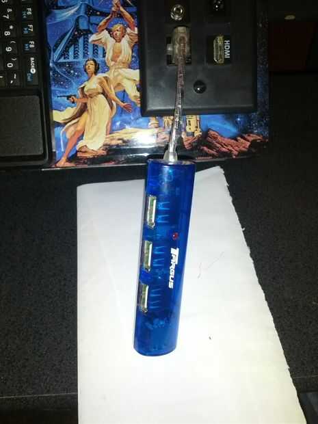 Puesto que hay solamente 1 puerto USB externo agregué un hub USB de 4 puertos (no alimentado)
