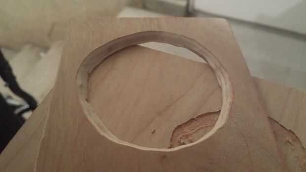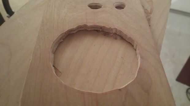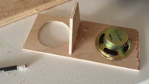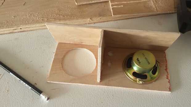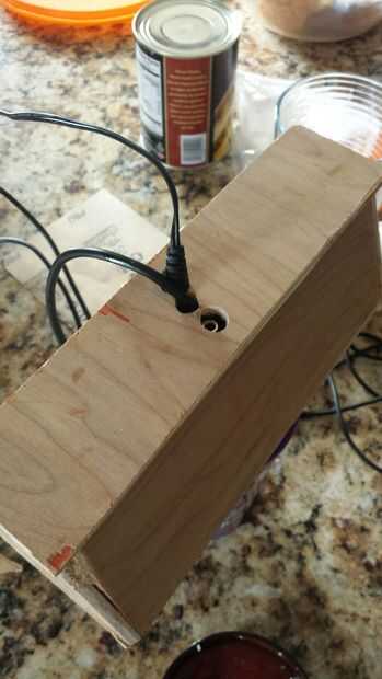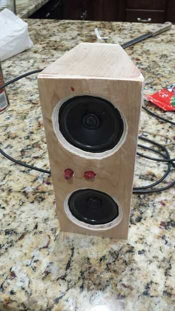 hice mi caja del altavoz usando 1 "x 6" sin tratamiento madera contrachapada que pegan para hacer 1 "x 12". Es approxamately 12 "x 14" x 18 ". Corté el 6.5" los agujeros del altavoz usando una sierra de calar. Tambi