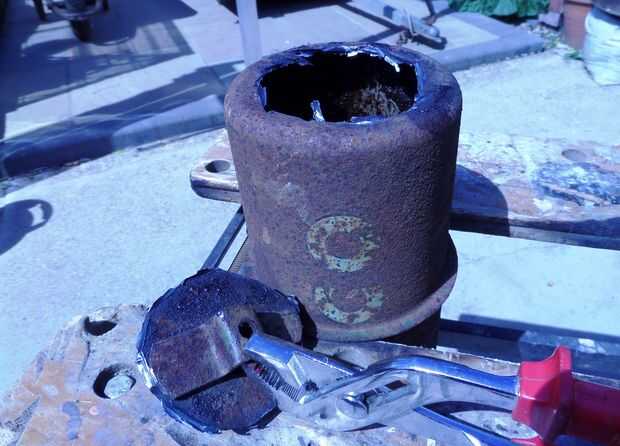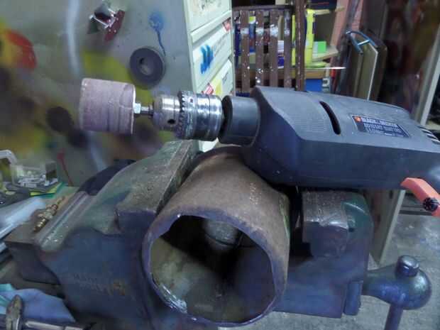 Terminado las tripas con una fuerte mezcla de detergente líquido y un cepillo de limpieza, luego limpiar las asperezas de la corte con un tambor de lijar en un taladro. Luego limpié el interior con un cepillo de alambre en un taladro.