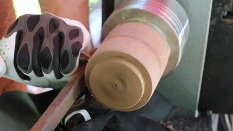 Primero quiere bajar su blanco al tamaño que está buscando. A continuación, desea encender un extremo de la espiga y luego la arena exterior hasta grano 220. Entonces usted quiere separar la pieza en dos mitades de la caja del anillo, superior e inferior. Tener en cuenta la cantidad de madera que está perdiendo a través de la separación cuando imaginan el tamaño final de su caja. Asegúrese de coger con cuidado la pieza que se cae.