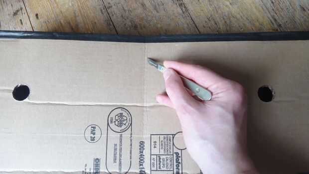 Haga un pliegue en el medio. Cualquiera de los dos -doblando apenas con fuerza. -por cortar un filete pequeño de la tarjeta, como se muestra... hacer más fácil sentarse a doblar.