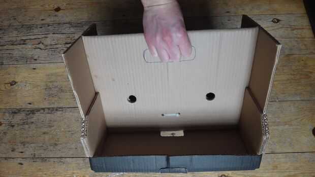Un tanque de agua para emergencias de una caja de cartón y una bolsa de basura