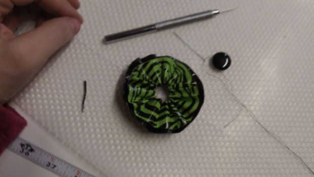 Después de instalar uno al otro se coser un botón en el centro. Se necesita un punzón de aguja o agujero grande.