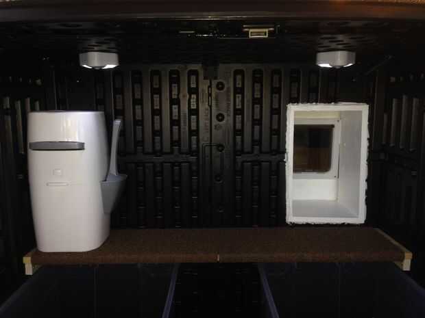 he instalado dos batería accionadas luces que trabajan en un sensor de movimiento así que los gatos no tienen que negociar la caja en la oscuridad total. Hay varias marcas y modelos que hay. Eres Bienvenido a elija su propia.