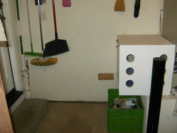 Alguien que vive con un gato de interior sabe lo mal puede ser cuando el gato usa su caja de arena. Una caja de gato es fea a ver y peor para oler.Paso 1: Utilizando el espacio muerto en la paredMi primer paso para abordar el problema era poner la ca
