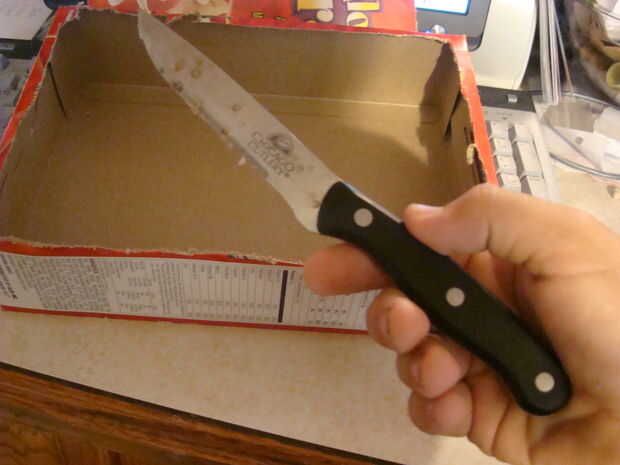 Ahora si eres como yo solo corte un agujero en la caja que ocupa la mayor parte de la parte superior, si usted quiere ser perfeccionista puede medir y usted dibuja líneas para que todo sea aún, pero comeone deja la cara esto es un Chazan desechable por lo que no es realmente importante.