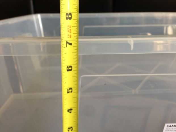 Salí de tres y media pulgadas de plástico de retención de basura debajo de la abertura. Elegido no flare en la parte superior para hacer los cortes tan simple como sea posible. Es un dolor para cortar plástico como este, y ángulos rectos facilitan las cosas. Usted puede conseguir tan elegantes como te gusta, pero he encontrado que mi perro sólo le importaba el ancho de la abertura y la altura del salto.