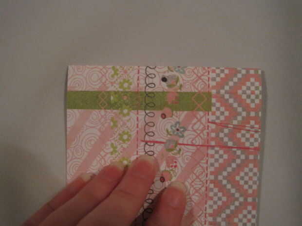 Tres agujeros a través del borde del libro, asegurándose de no ir más allá de la línea de 3 1/4".