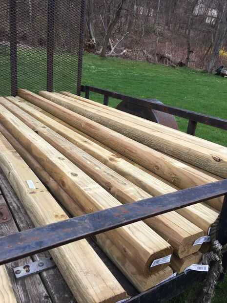 Estamos preparados para construir la pared y la valla comprando 80 maderas de jardín cuando estaban a la venta por menos de $2.00 pieza. Son aproximadamente 3 "x 4" x 8'.