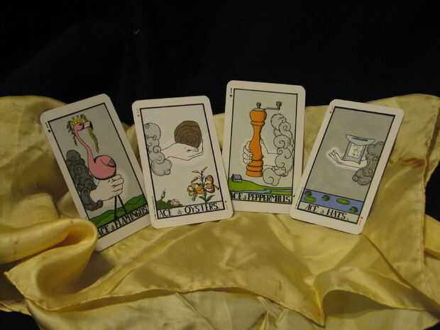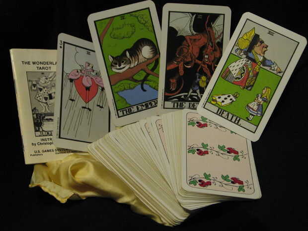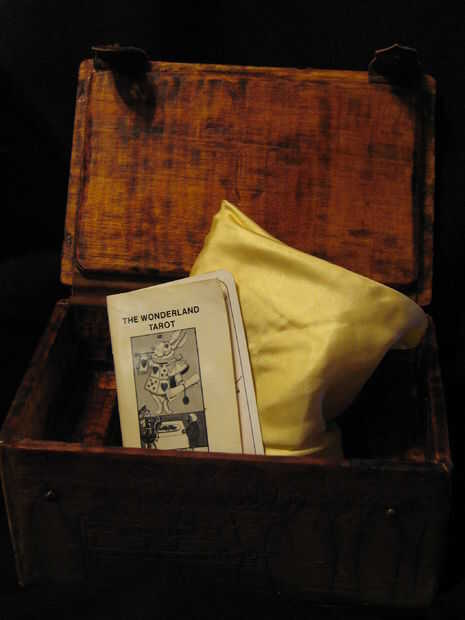 También tuve una baraja de Tarot de país de las maravillas, que de una manera similar. Decidí que quería hacer una caja para sostener ambas bandejas, y este fue el resultado.
