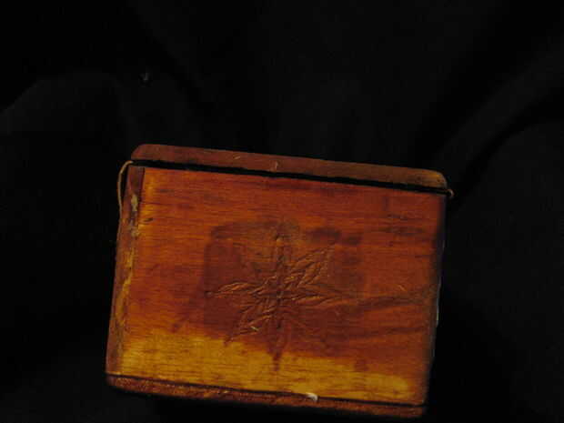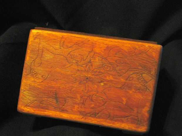 Todo esto fue puesto junto con pegamento para madera, enarenado liso, decorado con una herramienta de leña utilizando imágenes de las tarjetas y después acabados con aceite de linaza.