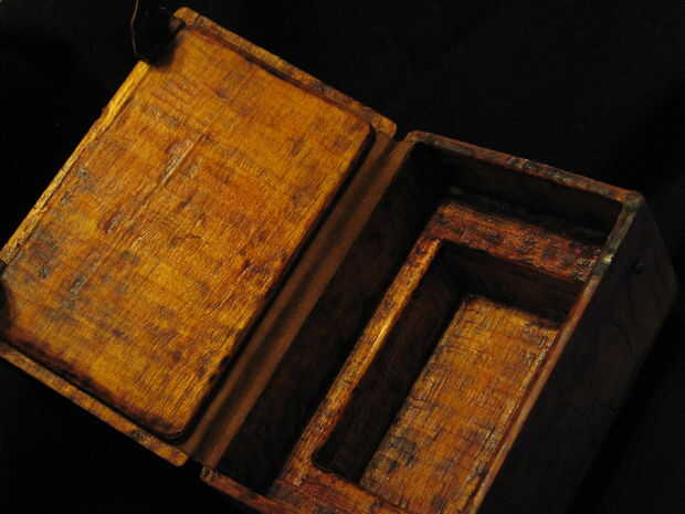 Se hace de pedazos de madera de balsa estándar de la tienda. Lados, superior e inferior fueron corte de tablones de 1/4", con un pedazo más pequeño pegado a la tapa para proporcionar un ajuste apretado. Bloques más grandes se usaron en la parte inferior para hacer el hueco para la baraja de tarot.
