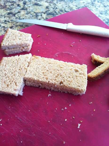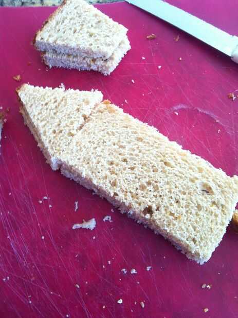 Para hacer el sándwich de lápiz, cortar dos piezas de pan en un rectángulo y tomar las piezas extras de pan y cortarlas en triángulos. A continuación, rellenar el interior del sándwich con mayonesa y queso y luego conecte el triángulo y el rectángulo por lo que parece un lápiz. Cubra la parte superior de la forma de lápiz con mayonesa para que el rectángulo y el triángulo parecen su conectado.