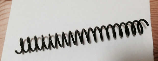 Contar los agujeros en el lado superior o inferior de la bisagra de la caja y añadir algunos extra para la buena medida. Cuenta el mismo número de bobinas en la parte posterior de su portátil sacrificial, y cortar la longitud que usted necesita. Volver a la sección de la bobina del portátil.