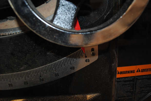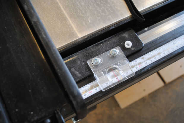 Cierre la hoja y colocar la guía en posición en el número deseado. Es importante hacer esto para obtener un corte más preciso. Coloque el extremo cortado contra la valla, pero por lo que es el ángulo de la valla (se muestra). Esto evitará que se mueva debajo de la cerca. Ejecutar la totalidad de la Junta.