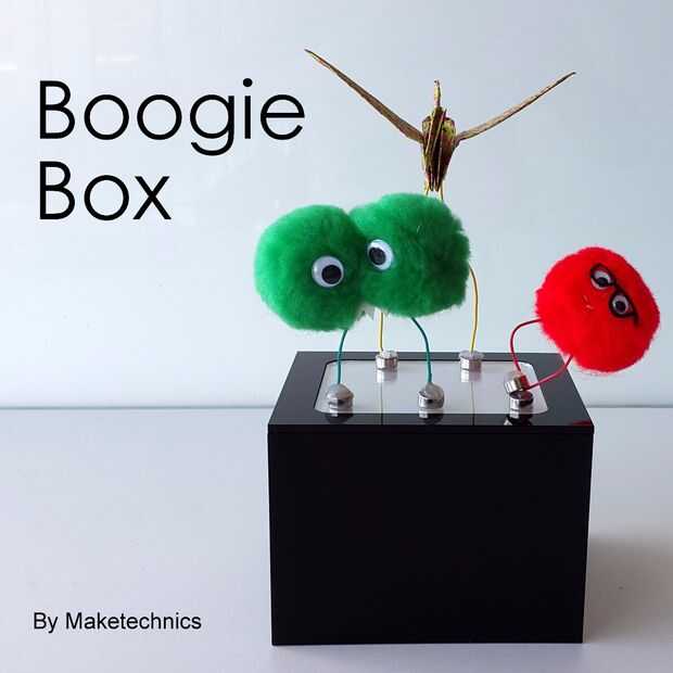 La caja de BOOGIE es un interactivo reprogramable que puede hacer casi nada de la danza y es divertido jugar con! Puede construir sus propios bailarines y coreografía para bailar sus canciones favoritas. Usted puede crear cualquier cosa! Sólo tiene que añadir los pies magnéticos y las posibilidades son ilimitadas.