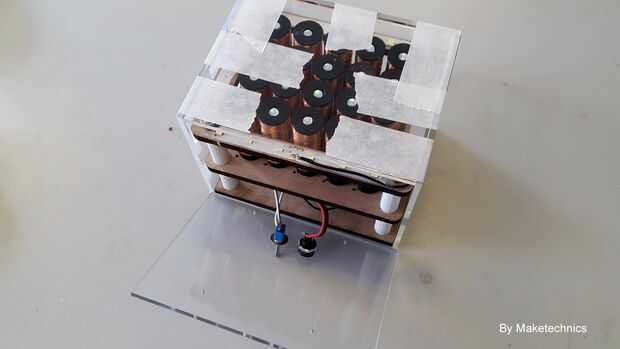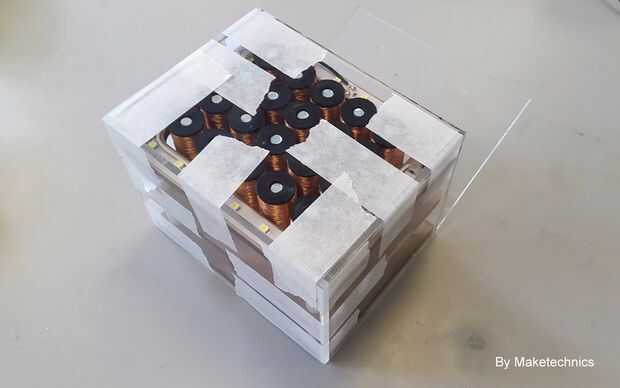El primer paso para armar la caja caja de Boogie es pegar todas las piezas con cinta. He utilizado mucho para asegurarse de que cada componente se alinea perfectamente con todos los bordes. La única pieza dejada fuera es el con el enchufe de alimentación.