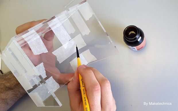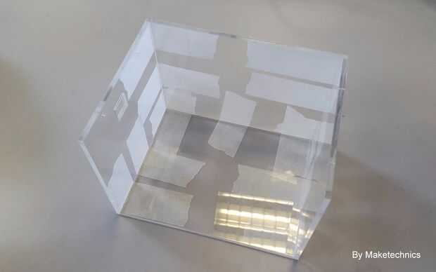Para pegar las piezas pequeñas gotas de acrílico se coloca pegamento en el interior de las esquinas. El efecto capilar "fuerzas" el pegamento fluya entre los bordes y se extiende en el interior. Usted necesita solamente 4-5 gotas de pegamento a lo largo de cada borde.