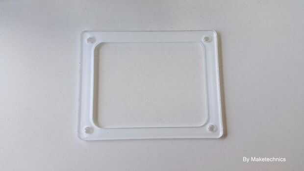 No estaba completamente satisfecho con los LEDs y había diseñado un difusor de luz. Se hace fuera del mismo acrílico de 3 mm pero dejé una de las cintas de protección blanco en su lugar. El difusor se encuentra en los tornillos que sujetan la estructura.