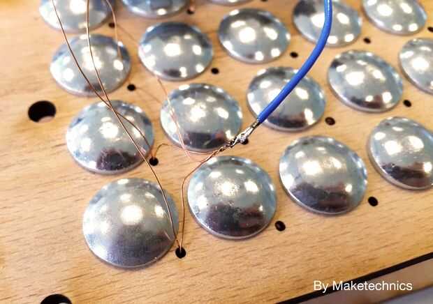 Pase los cables a través de pequeños agujeros en la madera contrachapada.