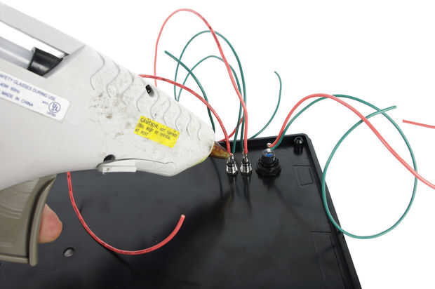 Introduzca una gota de pegamento caliente entre los conductores de la fotocélula y LED para aislarlos y evitar flexión en contacto con uno otro.