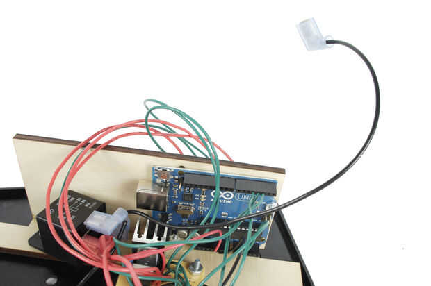 la caja de broma es básicamente una caja de madera sellada con un timbre eléctrico dentro de que es activada por un interruptor dominante. Una vez que se enciende, un relé dentro de la caja está trabado y no puede desactivarse sin saber el truco secr