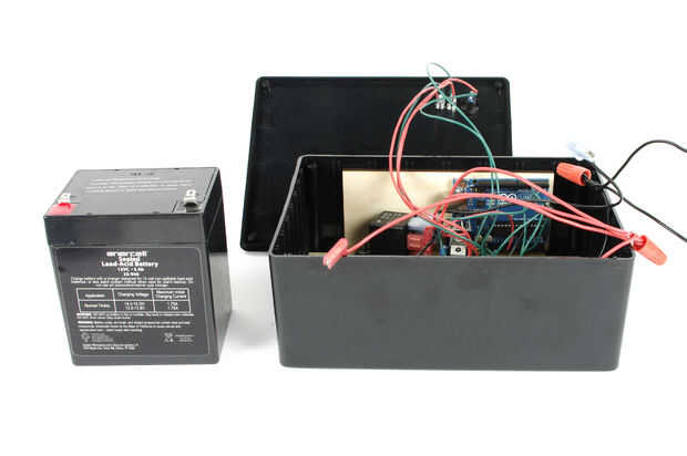 Conectar un cable rojo de conexión de 12V de la placa de circuito a la corriente terminal de la batería.