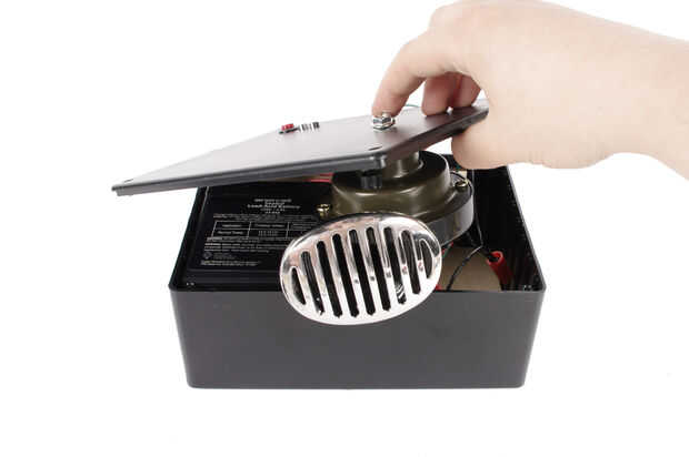 Este instructable es para una bocina de aire inalámbrico. El cuerno de aire es una bocina de aire 12V estándar y es alimentado con una batería de 18V taladro inalámbrico. El cuerno de aire es inalámbrica, esto es posible por un receptor inalámbrico c