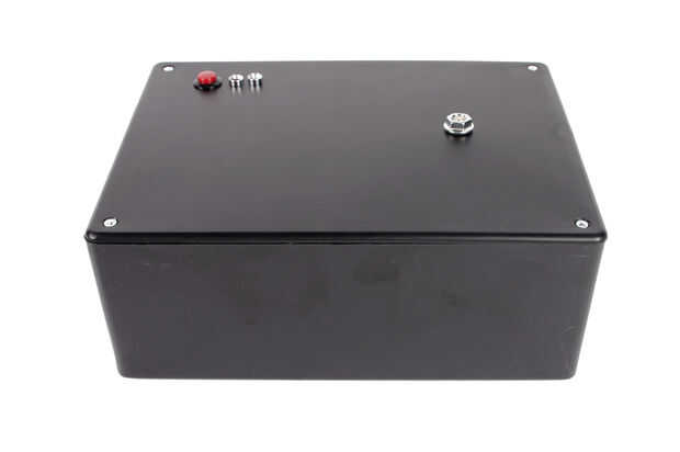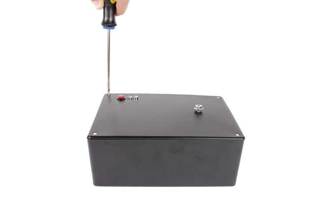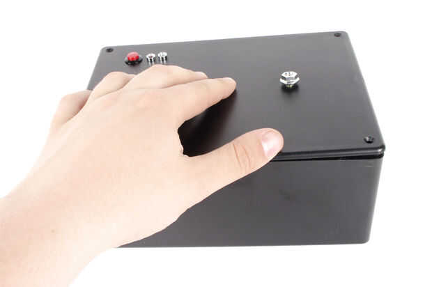 la caja de broma es básicamente una caja de madera sellada con un timbre eléctrico dentro de que es activada por un interruptor dominante. Una vez que se enciende, un relé dentro de la caja está trabado y no puede desactivarse sin saber el truco secr