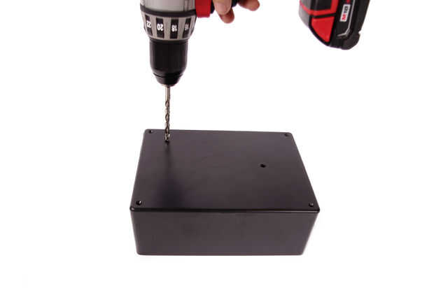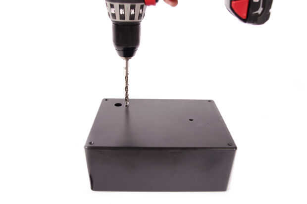 En una de las esquinas opuestas del último agujero perforado en la tapa, perfore un orificio de 1/2" y 1/4 orificios, que están espacian aproximadamente 1/4" de separación.