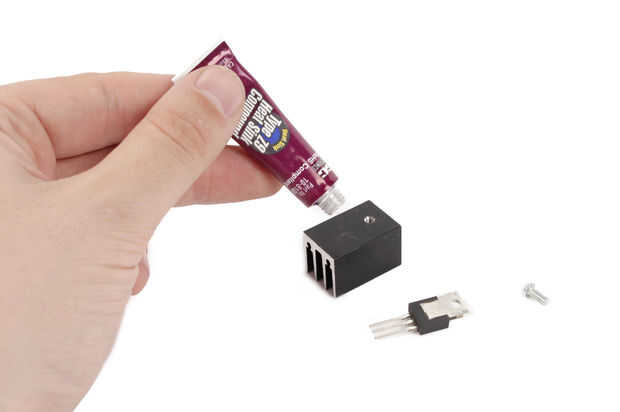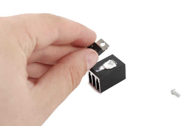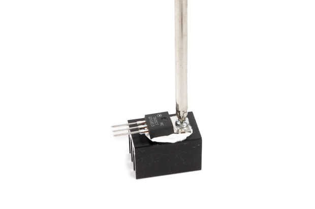 Aplicar pasta térmica a un disipador térmico y luego montar un regulador de voltaje 7805 con un perno de 1/4 "x 4-40.
