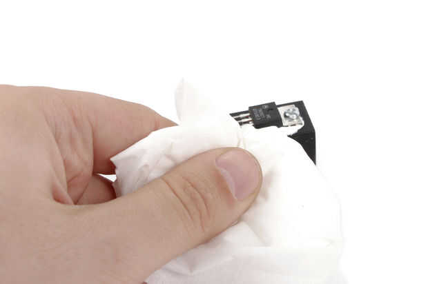 Limpie cualquier exceso de pasta térmico de los lados del regulador de tensión.