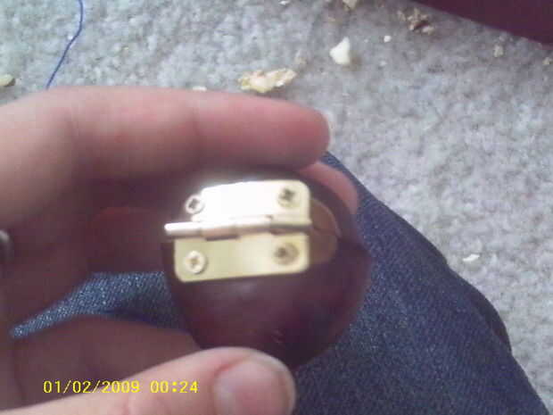 Fije la bisagra pequeña en la parte posterior con pegamento o con tornillos