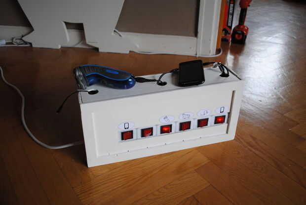Inspirado por otros proyectos aquí decidí hacer mi propia carga estación y quería hacer uno con interruptores individuales para evitar mantener todos los cargadores cuando sólo necesita utilizar uno, ahorrando energía. Esto es lo que se me ocurrió.