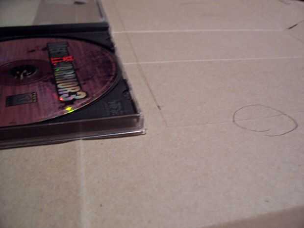 agarra su cuchillo y corte alrededor de la caja de cd, o si han trazado corte a lo largo de la línea trazada.