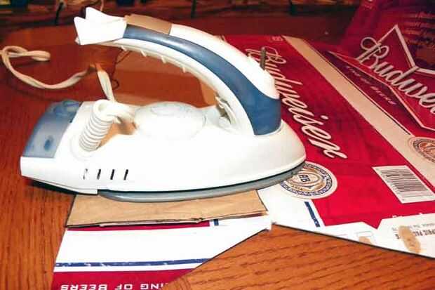 Esto es donde la plancha de ropa. No planchar ropa en años, pero ahhh ahora tiene un uso. Una vez que el pegamento abajo, doblar los paneles y aplique calor con la plancha. Esto se vuelva a calentar el pegamento. ¡ Ay! Plancha caliente como una madre...