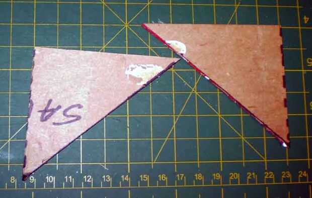 Las piezas guardadas, doblar por la mitad y pegamento en caliente.