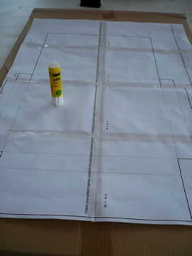 aquí a la cartulina. Usted tendrá que hacer clic en el enlace de patrón portátil caso. Pegar juntos el patrón. Utilice un palillo del pegamento para pegar en la cartulina ligeramente (sin necesidad de ir demasiado loco con el pegamento, vas a querer sacar el patrón)