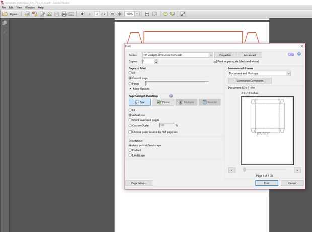 Ahora imprimir la plantilla personalizada. Como antes, asegúrese de configurarlo para imprimir a tamaño completo, no ajustado para caber el papel. Si no has impreso las plantillas para las piezas sin alteraciones de la caja, hacerlo ahora.