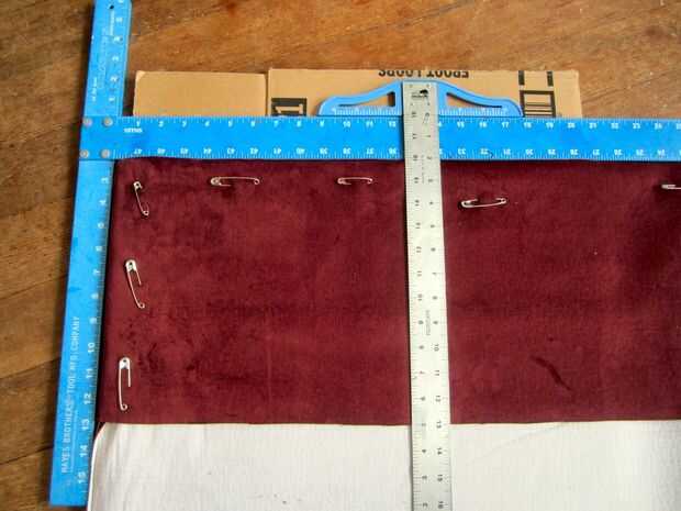 UE: Irauli hodi costura dela eskuinaldean zehar baino gehiago. Funtsean errepikatu urrats 7 eta 8. Ezkerraldean Neurtu zure ekipoan luzeenak alboko zabalera gisa betiere. Markatu lerro bat eta pin batera.