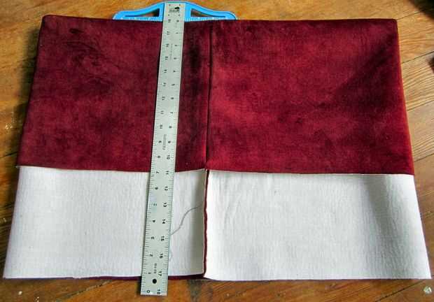 ID: Sisi yang salah bersama-sama, lipat jumlah yang akan menjadi lapisan bawah seperti yang ditunjukkan dalam foto. Berbaris jahitan sehingga mereka selaras. Lipat bawah lapisan sehingga setinggi kotak direncanakan akan tinggi.